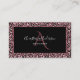 Ce design de poutres glamour à la mode, professionnel et unique présente un grand monogramme personnalisable en rose or rose foncé sur le devant, une élégante typographie d'affichage, ainsi qu'un nom personnalisable dans un magnifique script avec un look à la main en blanc dans un rectangle noir à la bordure rose-or, avec le titre de l'emploi ci-dessous. Le arrière - plan comprend des taches de léopard d'or rose de glam sur un arrière - plan d'or rose plus léger et roux. Le verso de la carte contient du texte plus personnalisable. Vous pouvez personnaliser cet élément en modifiant le monogramme, le nom et le texte dans le modèle du produit.