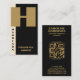 Carte De Visite Monogramme noir minimal moderne Code QR vertical
