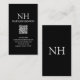 Cartes de visite QR Code moderne avec un design noir simple et minimal avec votre monogramme en caractères gras avec votre nom en haut. Voici vos coordonnées.