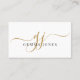Ce carte de visite moderne dispose d'un élégant monogramme en or de vos initiales, parfaitement équilibré avec votre nom dans une police serif noire propre. Design sophistiqué et attrayant, il est idéal pour tout professionnel à la recherche d'une identité de marque haut de gamme et élégante. Le revers de la carte inclut des icônes de médias sociaux et des poignées pour aider les clients à se connecter avec vous en ligne. Tout le texte est entièrement personnalisable.
