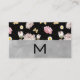 Carte De Visite Monogramme Roses roses Fleurs et papillons