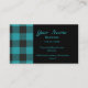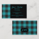 Carte De Visite Monogramme Turquoise Turquoise noir Buffalo Plaid