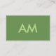 Ce design minimaliste Monogram Green attire l'oeil et est sophistiqué. Sélectionnez le stock ou le linge en papier de première qualité pour un look et une sensation de haute qualité et impressionner votre clientèle. Ce carte de visite est un modèle prêt à personnaliser vos informations. Pour toute demande de conception, contactez le concepteur. ©2010 Joshua Martin