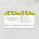 Un motif de poires vertes vibrantes dans les tons jaune et vert avec des feuilles vert vif. Certaines poires sont divisées en deux pour montrer les grains et les entrailles juteux. Avec des icônes de médias sociaux customisées et du texte modèle, ce carte de visite sur le thème de la poire fait un ajout brillant, frais et mémorable pour les indépendants, les consultants et les travailleurs indépendants.