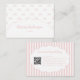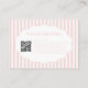 Carte de visite au motif à rayures et nœud rose vintage tendance, conçue pour les marques jolies, girly et féminines. Parfaite pour les boutiques de vêtements pour bébés faits main, les artistes maquilleurs et les propriétaires de petites entreprises. Comporte une intégration de code QR stylée pour un réseau moderne et un attrait de marque professionnelle.