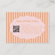 Carte de visite tendance inspirée de l'orange vintage rose à motif à rayures et nœuds conçue pour les marques féminines, girly et élégantes. Parfaite pour les boutiques de vêtements pour bébés faits main, les artistes maquilleurs et les propriétaires de petites entreprises. Caractéristiques de placement de code QR moderne pour un réseau et une marque professionnels et stylés.