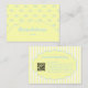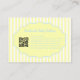 Carte de visite au motif à rayures jaunes et bleues avec nœud, conçue pour les marques féminines, girly et élégantes. Parfaite pour les boutiques de vêtements pour bébés faits main, les artistes maquilleurs et les propriétaires de petites entreprises. Caractéristiques intégrant un code QR stylé avec une esthétique vintage douce pour une marque moderne et accrocheuse.