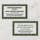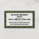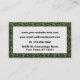 Créez vos propres cartes de visite de camouflage en utilisant ce modèle facile et do-it-yourself. Il a une bordure en camo vert et marron des deux côtés avec un espace blanc semi-transparent au milieu pour vous permettre d'ajouter toutes vos informations professionnelles. customisez facilement en utilisant le champ "Personnalisez-le" fourni ou cliquez sur "Customisez-le" pour déplacer du texte / modifier des polices, etc.