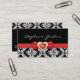 Carte De Visite Motif damassé noir blanc avec arc rouge et bijou