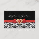 Carte De Visite Motif damassé noir blanc avec arc rouge et bijou