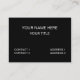Carte de visite, taille : États-Unis : 8.9 cm x 5.1 cm, papier : Standard Semi-brillant, coins : Carré
