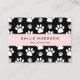 Cartes de visite mignons, amusants et adorables avec pattes blanches sur arrière - plan noir. Design moderne et tendance, parfait pour les baskets, les toiletteurs, les promeneurs de chiens, les gardiens de chiens, les animaleries et les vétérinaires.