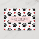 Cartes de visite mignons, amusants et adorables avec pattes noires et coeurs rouges. Design moderne et tendance, parfait pour les baskets, les toiletteurs, les promeneurs de chiens, les gardiens de chiens, les animaleries et les vétérinaires.