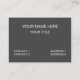 Carte de visite Motif en pierre de Grey dessiné par Nisha Prabhu. Entièrement Personnalisable. Personnalisez avec vos détails. Le carte de visite motif en pierre de Grey Rock est un choix étonnant et unique pour les professionnels qui souhaitent un look sophistiqué et moderne. Le design se compose d'un motif tourbillonnant de textures de roche grise, créant un effet visuel frappant. Ce motif rappelle les formations de pierres naturelles, symbolisant la force, la stabilité et la résilience. L'utilisation d'une palette de couleurs gris foncé ajoute une touche d'élégance et de professionnalisme au design général. La police nette et nette en gris clair contrasté complète le look, rendant la carte facile à lire et laissant une impression durable sur les clients potentiels ou les associés d'affaires. Que vous travailliez dans un environnement d'entreprise, dans l'industrie du design ou dans tout autre domaine professionnel, le carte de visite de motif Gris Rock Stone est un choix parfait pour les individus qui s'efforcent de faire une déclaration audacieuse et mémorable.