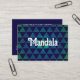 Carte de visite de Motif de triangle géométrique Mandala vert bleu conçu par Nisha Prabhu. Entièrement Personnalisable. Personnalisez avec vos détails. Triangles géométriques bleus avec motif radial circulaire mandala vert. Un cadeau parfait pour vos amis spirituels, méditants, guérisseurs reiki, pratiquants spirituels, pratiquants de la méditation, maîtres reiki. Les Mandalas apportent un sentiment de détente. Ils aident à équilibrer. Elles apportent calme et tranquillité. Les regarder vous donnera un sentiment de calme. Ils aident à la concentration.