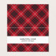 Motif plaid tendance rouge et noir avec des accents rayés blancs.