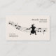 A simple business card with a beige background for a cello teacher or a cellist. It comes with a silhouette of a cello player and music sheet.
