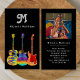 Faites une impression durable avec ce Carte de visite de musicien de guitare moderne et coloré, conçu pour se démarquer dans le réseau de tout professionnel de la musique. Doté d'oeuvres d'art psychédéliques dynamiques, le design présente une guitare acoustique, une guitare semi-acoustique et une guitare électrique aux couleurs vives et audacieuses contre un arrière - plan noir frappant. La typographie rétro super apporte une touche de cool et de nostalgie, ce qui en fait l'endroit idéal pour les guitaristes, musiciens professionnels, artistes et professeurs de musique. Ce carte de visite est livré avec des modèles faciles à utiliser pour une personnalisation sans effort : ajoutez votre monogramme, votre nom, vos coordonnées et même une photo, en vous assurant qu'il reflète votre style et votre marque uniques. Le design artistique et ludique capte l'énergie et la créativité de la musique, ce qui en fait un moyen mémorable et engageant de communiquer avec ses clients et ses collègues. Créée par l'artiste Catherine Sweetman, cette oeuvre originale allie l'esprit ludique de la musique à un look professionnel et poli, ce qui en fait le choix idéal pour tout musicien désireux de faire une déclaration audacieuse. Que vous le transmettiez à des étudiants ou que vous le mettiez en réseau avec des professionnels de l’industrie, ce carte de visite dynamique laissera une impression durable.