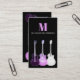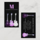 Des guitares cool pop art semi acoustiques ornent ce cool violet et rose funky sur un arrière - plan noir avec monogramme et nom personnalisés. Ajoutez Vos propres détails en utilisant le modèle pour créer le carte de visite parfait pour les musiciens professionnels, les professeurs de guitare et les amateurs de musique. OEuvre originale de l'artiste Catherine Sweetman