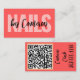 Ce Design comporte du texte en gras sur un arrière - plan rose corail, et une face de type Script à la main pour le nom que vous lui donnez. Le dos a une place pour votre code QR (il suffit d'entrer votre URL) et un endroit pour votre nom et numéro de téléphone.