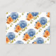 Marine Blue et brûlé Orange Floral Boho Mariage site Carte de visite