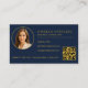 Carte De Visite Navy Blue Gold Business Consultant Photo QR Code
