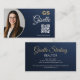 Carte De Visite Navy Blue Gold Photo Realtor QR Code Metallic