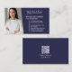 Carte De Visite Navy Blue Modern Professional QR Code Photo Logo