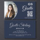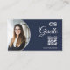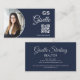 Carte De Visite Navy Blue Silver Photo Monogram Realtor QR Code