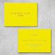 Imaginez une image inoubliable avec ce carte de visite lumineux et moderne, avec un arrière - plan jaune vif et un texte d'effet or subtil. Conçue avec une typographie audacieuse et minimaliste et une mise en page propre, cette carte met en valeur votre ville, votre nom d'entreprise et vos coordonnées dans un style à la fois élégant et facile à lire. La couleur énergique et le design élégant en font un endroit idéal pour les petites entreprises contemporaines qui cherchent à se démarquer sur le marché d'aujourd'hui. Tout le texte, les polices et les couleurs peuvent être customisés pour correspondre à votre marque. Les éléments en or sont imprimés pour un look de luxe sans papier métallique.