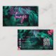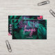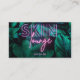 Ajoutez votre nom et vos coordonnées à ce carte de visite élégant et moderne, doté d'un feuillage vert foncé tropical. Les mots "Skin" et "lounge" sont en typographie de néon violet et rose avec votre nom en dessous, et vos coordonnées au verso de la carte. Il y a aussi un code QR, où vous pouvez ajouter votre URL de médias sociaux. Contactez le concepteur si vous souhaitez une couleur différente sur le texte du néon.