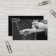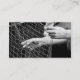 Carte de visite avec une photo avant de mains tenant un filet de pêche. Personnalisable . Bord noir avec info.