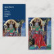 Coloré, vibrant, peinture contemporaine en or, bleu, rouge, vert, couleurs marron. Un mystérieux sorcier hypnotique avec d'élégants costumes de velours rouge tenant une sphère magique assise sur un trône gothique avec des gargouilles et une chouette. Ambient est surréaliste, fantastique, alchimique où vous voyez un bouchon boire d'une tasse, un moine tempéré volant sur une grenouille, bulles transparentes, paysages d'imaginaire avec feu d'enfer, ciel bleu cosmique avec étoiles, montagnes du ciel, arbres.Egg Tempera sur panneau en bois avec feuille d'or. 1989, Miniature Fabriquée avec des techniques picturales de 1300 par Alessandro Lumini (c) C'est aussi un beau design d'imaginaire pour Noël, Fête, Anniversaire, Jour de la Saint-Sylvestre, Mardi Gras et salutations carnavales.