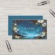Define your brand with the magical elegance and celestial mystery of an exclusive destination using this captivating business card. The design centers on a spectacular nocturnal waterscape, dominated by a wide, calm lake reflecting the deep starry midnight blue sky. The backdrop features jagged, misty blue mountains and a tranquil valley, all framed by a thin, metallic gold rectangular border. The entire scene is lavishly framed by lush white roses and vibrant copper-toned foliage that glow with subtle starlight, creating a brilliant contrast against the dark atmosphere. This artwork blends cinematic, magical realism with opulent, sophisticated florals, making your card truly unforgettable. This business card is ideally suited for a high-end event stylist specializing in fantasy or twilight-themed galas, a boutique travel agency promoting exclusive, hidden destinations, or a fine jewelry designer showcasing gold and star-themed pieces. It would also perfectly suit a fantasy novelist or game developer seeking distinctive, narrative-driven branding, or a luxury hotelier wanting to convey a magical, serene setting.