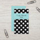 Carte de visite élégant de dames, fait dans un motif de point noir et blanc de polka. Une rayure audacieuse bleu vert, à travers le dessus, et le dos solide d'aigue-marine a le texte noir prêt à personnaliser avec votre information. Un beau tient la carte grande pour n'importe quel genre de profession ou d'affaires.