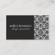 Carte de visite noir chic de damassé de Mallory #2 par BoutiqueMama.com. Pour customiser cette conception, cliquez sur dessus la personnaliser il lien. Conception web assortie disponible chez BoutiqueMama.com !