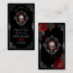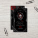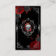 Cartes de visite avec un motif crâne fleuri en rouge et noir. Ces cartes sont destinées à des produits de sorcellerie comme des bougies, des cristaux et des pierres précieuses, des jarres et des kits d'orthographe.