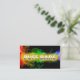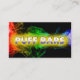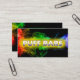 Vape Puff Bar Disposable Carte de visite noir avec un design de fumée vibrant et de couleur arc-en-ciel, et texte brillant haut avec une lueur jaune derrière.