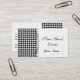 Cette conception de carte de visite est sûre d'attirer l'attention et de vous aider à se tenir dans la foule. Une papeterie audacieuse ou un morceau promotionnel peut être un grand outil de la publicité pour vos affaires. Employez-la vous-même, donnez aux employés, ou employez-les comme dons de client. Cette conception a un arrière - plan qui est blanc avec un motif noir et blanc de pied-de-poule. Perfectionnez pour n'importe quelles affaires mais particulièrement grand pour le salon nuptiale, en épousant la planification, planification d'événement, restauration, salon de clou, spa, des bijoux, cosmetologist, mode, consultant en matière de beauté, ou quand vous voudriez un contact élégant.