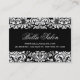 Carte De Visite Noir et blanc Élégant Damas Floral