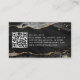 Carte de visite professionnel moderne et élégant avec code QR avec géode agate noir, veines de parties scintillant en marbre et faux or et accents pétillants personnalisés avec des initiales monogrammes de style signature fantaisie avec des swashes. MODIFICATIONS : Modifiez le style, la couleur, la taille et le placement de la police de texte dans EDIT. ASSISTANCE : Pour obtenir de l'aide sur la modification ou la personnalisation de la conception ou pour coordonner des éléments, contactez le concepteur AVANT LA COMMANDE via l'onglet MESSAGE Conversation Zazzle ou envoyez un courriel à makeitaboutyoustore@gmail.com.