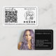 Ce carte de visite double face élégant et moderne est parfait pour les professionnels qui cherchent à se connecter en toute transparence. Doté d'un espace photo et de détails d'affaires sur le devant, avec un code QR, un logo et des poignées de médias sociaux sur le dos pour un fiançailles sans effort. Idéal pour les coiffeurs et les maquilleurs, les stylistes et les propriétaires de petites entreprises. En noir classique simple et blanc avec un cadre de bordure rond. Toutes les couleurs sont modifiables.