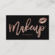 Un carte de visite élégant, moderne, élégant de maquilleur avec la typographie élégante de style de lettrage de main de manuscrit de lèvres dans la feuille d'or rose de faux sur un arrière - plan noir personnalisable simple. Si vous avez besoin de n'importe quelle personnalisation, n'hésitez pas en me contactant