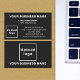 Carte de visite que vous pouvez customiser pour vos clients ou clients de trouver facilement votre adresse professionnelle et les coordonnées de votre contact. Les couleurs et le style de design sont des textes blancs sur les textes en noir arrière - plan et centré aligné de votre nom d'entreprise, de votre nom et de votre titre. Pour customiser ce carte de visite, téléchargez votre logo d'entreprise, tapez votre nom d'entreprise, votre nom, votre titre, votre adresse, votre numéro de téléphone, votre courriel et votre site Web ou votre page de médias sociaux professionnels. Après avoir téléchargé le logo et tapé des textes, veuillez vérifier l'apparence sur les côtés avant et arrière. Si l'apparence vous plaît, vous pouvez passer votre commande maintenant. Si vous avez besoin de redimensionner et déplacer le logo et les textes pour s'adapter à ce carte de visite, s'il vous plaît changer dans l'outil de conception. Vous pouvez également effectuer d'autres modifications dans l'outil de conception en fonction de l'apparence de ce carte de visite que vous préférez, comme changer la couleur arrière - plan, la couleur de police et le style de police.