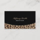 Carte de visite noire à motif léopard guépard. Elle peut être personnalisée pour toute profession avec n'importe quel texte.