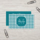Un monogramme de motif de carreaux à carreaux géométriques turquoise et blanc à la mode visitant carte de visite. Personnalisez ce design élégant en ajoutant votre nom et votre initiale monogrammée à l'avant, ainsi que vos coordonnées à l'arrière.