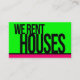 Ce vert néon avec carte de visite à garniture rose chaud est SÛR de se démarquer. Parfait pour tout locataire potentiel, avec la citation "Nous louons des maisons" sur le devant.