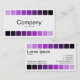 Un élégant modèle moderne pour carte de visite/profil. Haut et bas bordé d'une rangée de neuf carrés arrondis allant du violet clair au noir. Détails de l'entreprise sur l'avant avec nom et coordonnées sur l'arrière.