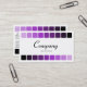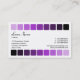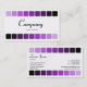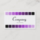 Un élégant modèle moderne pour carte de visite/profil. Haut et bas bordé d'une rangée de neuf carrés arrondis allant du violet clair au noir. Détails de l'entreprise sur l'avant avec nom et coordonnées sur l'arrière.