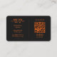 Carte de visite à monogramme de photographe avec objectif d'appareil photo noir orange minimaliste avec code QR